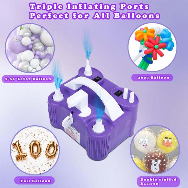 Elektrik şar nasosu 5 peşəkar inflyasiya nozozu, uzantı şlanqı, ikiqat top iynə və top iynə və top inflyasiya hortumu, şişmə döşəklər, yoga topları, şişmə qayıqları, şişmə qayıqları və basketbol, futbol və voleybol kimi idman toplarını şişiraz. Xüsusi bir balon kəsici və ağıllı knotter xüsusi olaraq daxil edilir, beləliklə şar kəsmə və düyün bir addımda edilə bilər. Hətta yeniliklər peşəkar səviyyəli balon formalaşmasını tez bir zamanda tamamlaya bilər.