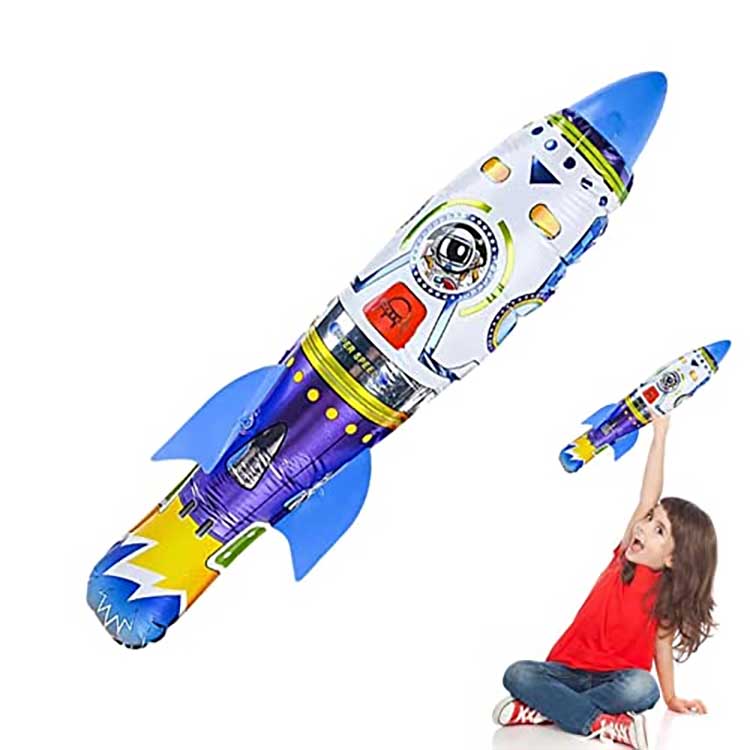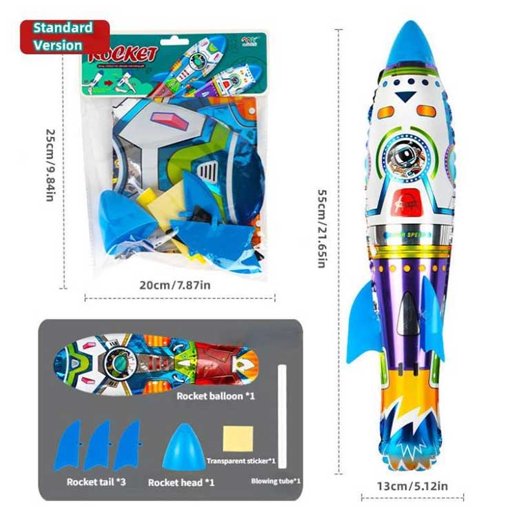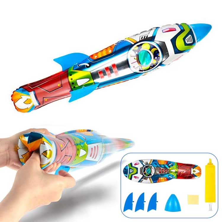 3D raket folqa balon atma şişmə oyun baxımından da çox çevik; heç bir elektrik tələb etmir, sadəcə uçuş gücü üçün əl ilə atın. Raketin uzaqlara uçması üçün hər şey onu nə qədər yüksək tutmağınızdan və atarkən nə qədər güc istifadə etməyinizdən asılıdır, nə qədər çox güc və nə qədər yüksək tutsanız, bir o qədər uzağa uçacaq.