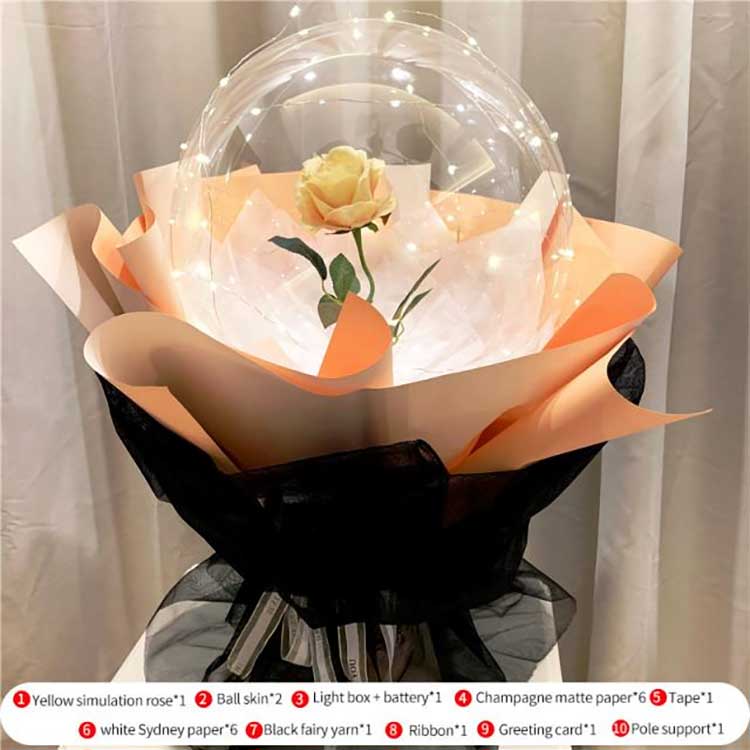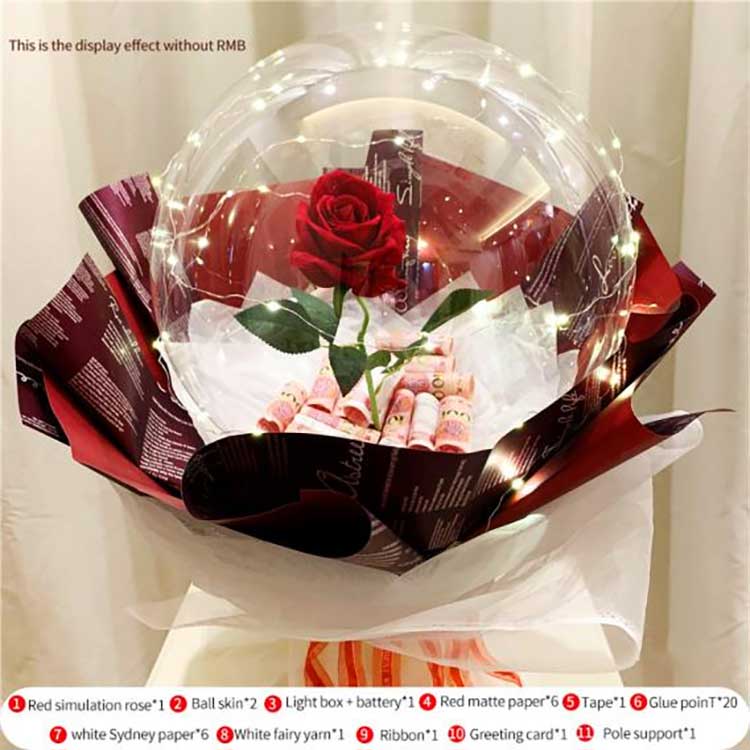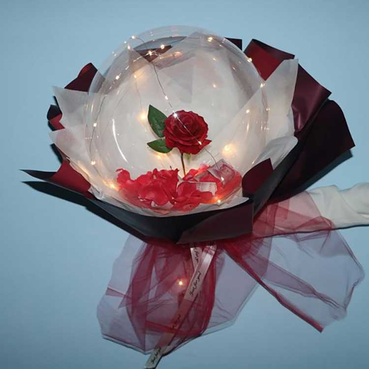 BOBO balonuinanılmaz dərəcədə atmosferlidir:Şəffaf BOBO şarları, yerləşdirilmiş qızılgüllər və LED işıqlarından ibarət dəst parlaq və romantik vizual effekt yaradır. LED işıqlar həm də yumşaq parıltı verir və onu Sevgililər Günü, yubileylər, ad günləri, məzunlar və Analar Günü üçün vacib hədiyyə edir.