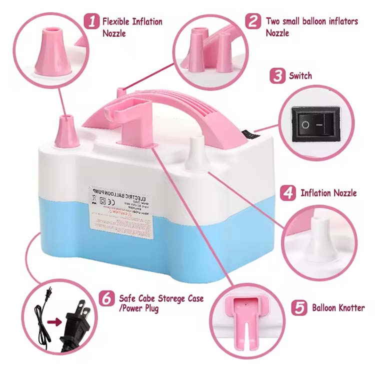 Düyünlü ikiqat nozzle ilə elektrik nasosuİkiqat nozzle dizaynı var: Effektivliyi iki dəfə artıraraq eyni vaxtda iki şar ilə şişir.