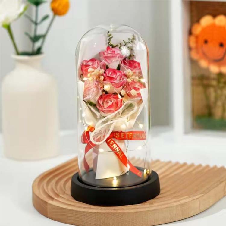 LED Hədiyyə qutusu ilə şüşəli günbəz sabunu gül buketimiz, praktik funksiyanı sentimental məna ilə birləşdirir, onu sevindirməyə dəyər bir hədiyyə halına gətirir. Evinizə romantikaya toxunmaq və ya xüsusi birinizə xüsusi bir hədiyyə göndərmək istəsəniz, isti və unudulmaz bir hədiyyədir.