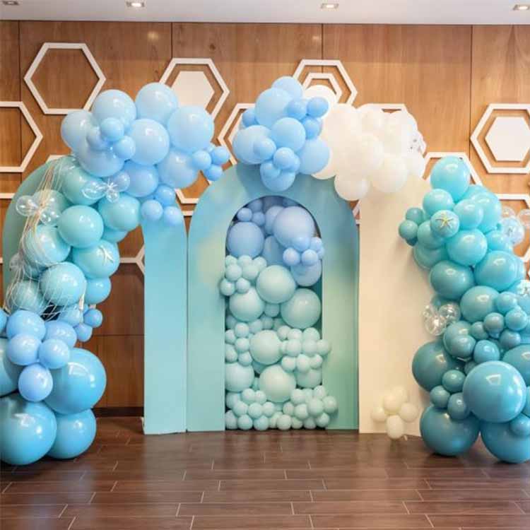 3.Siqar effektli şarlar: inci mavi balonlar (okean əksini simulyasiya etmək) və sequifed şarları (daxili ulduz işığını təqlid etmək üçün quraşdırılmış gümüş və ya mavi sequins ilə)