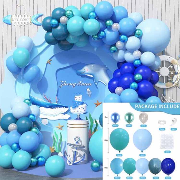 Okean balon dəsti "Dəniz ekologiyası" anlayışı əsasında hazırlanmış bir mənzərə bəzəyidir. Rənglərin, şekiller və aksesuarların əlaqələndirilmiş istifadəsi ilə, o okeanın sirrini və canlılığını özündə cəmləşdirir. Ad günü partiyaları, uşaq otaqları, okean temalı hadisələr, ticarət mərkəzləri pəncərəsi nümayişləri və digər hallar, həm bəzək, həm də interaktivdir, həm ailələr, partiya planlaşdırıcıları və temalı hadisə təşkilatçıları ilə məşhurdur.