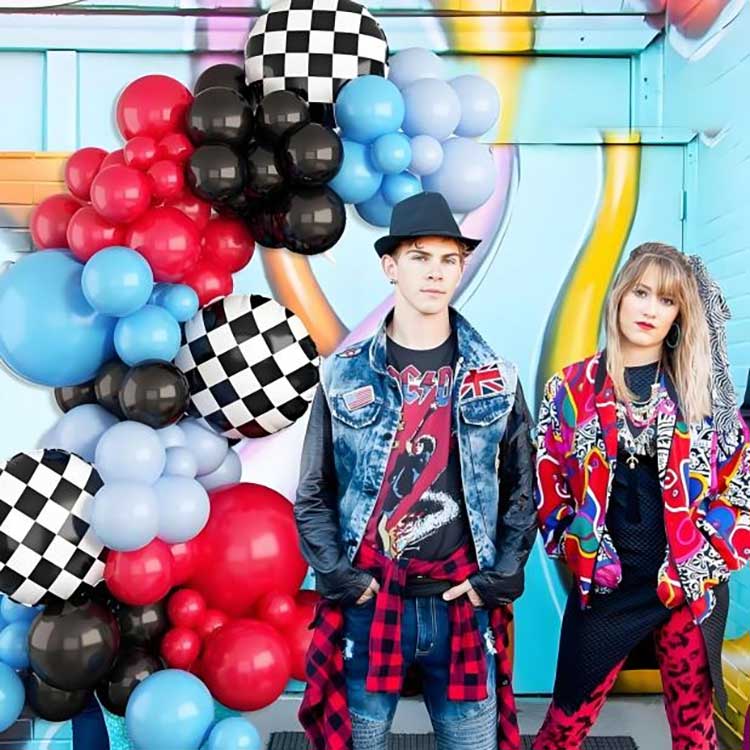 Yarış mövzusu Balloon Arch Dekorasiya dəsti 88 komponentdən ibarətdir. Buraya 80 lateks balon, 6 folqa balonları, 1 balon zənciri və 1 yapışqan nöqtə daxildir.