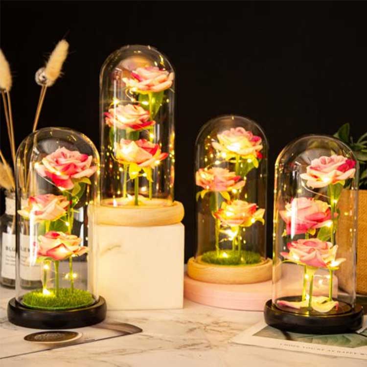 Bir gül şüşə günbəzi, romantik bir atmosfer yarada biləcək bir dekorativ əşyadır. Bunu etmək təhlükəsiz olan masaüstünə və ya giriş yoluna yerləşdirilən mebel bəzəyi kimi istifadə edilə bilər; Yubileylər, Sevgililər Günü, doğum günləri və ya xatirə kimi bir hədiyyə olaraq verilə bilər; Vitallıq əlavə etmək üçün də ofisə yerləşdirilə bilər.