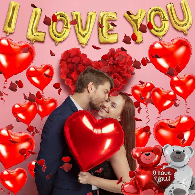 Sevgililər Günü Folqa Balonları "Səni sevirəm" və "Sevgililər Günü mübarək" kimi şirin şüarlar. Balonlar canlı qırmızı, çəhrayı və qızıl folqa içərisində olur, şişirdildikdə üç ölçülü bir effekt yaradır.