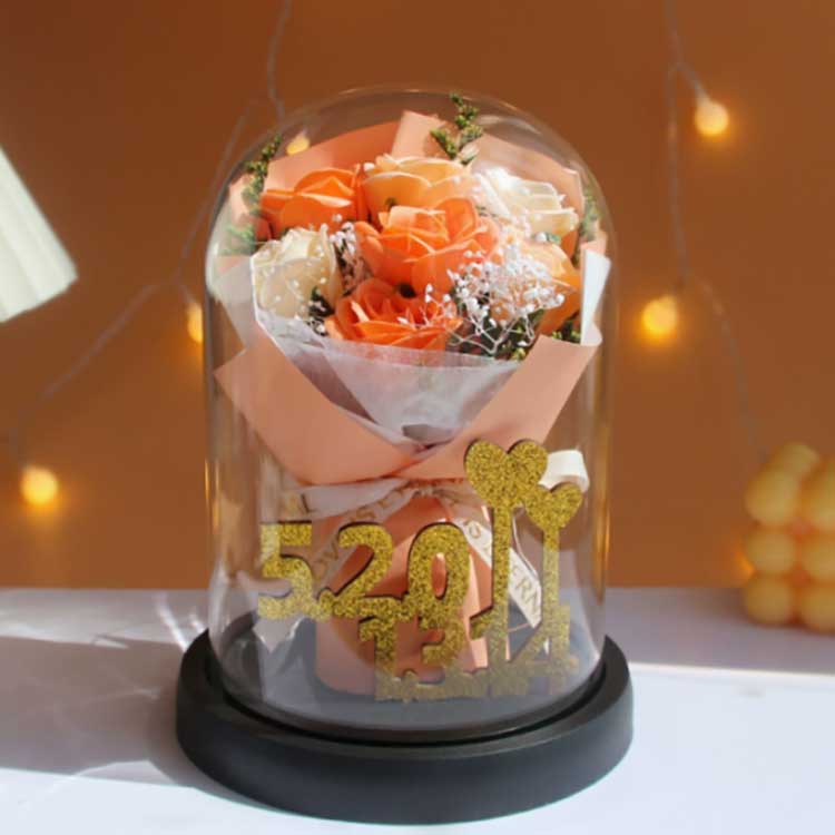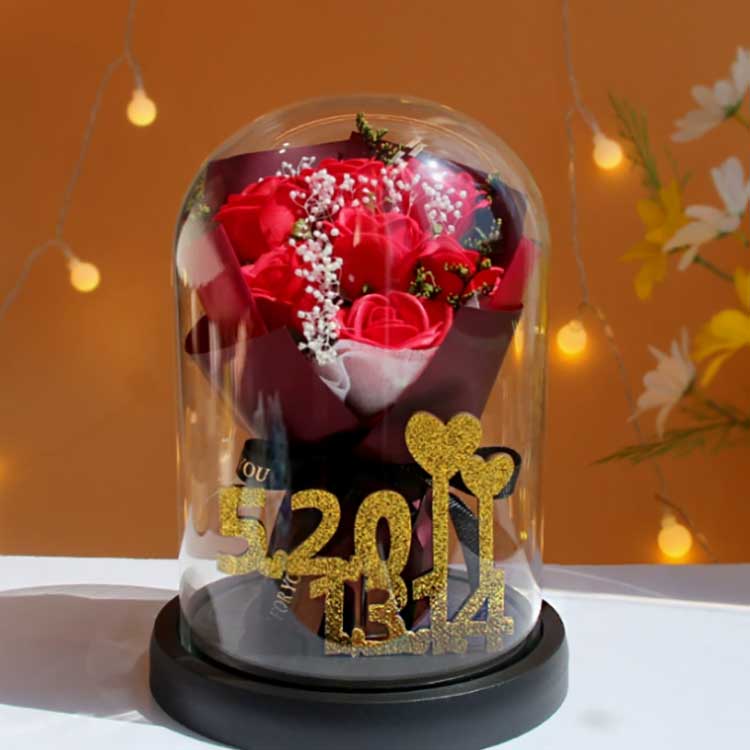 Bu şüşə qızılgül buketi çiçəklərin solmasının qarşısını almaq üçün nəzərdə tutulub və içərisindəki qızılgüllər solmayacaq. Buket çox canlıdır, həqiqi çiçəklərdən demək olar ki, fərqlənmir və buketin gözəlliyini çox gözəl təqdim edə bilir. İçəridə 520+1314 qızılı rəqəmlər sevgini simvolizə edən və bu hədiyyənin düşüncəliliyini vurğulayan 520 və 1314 rəqəmlərini təmsil edir.